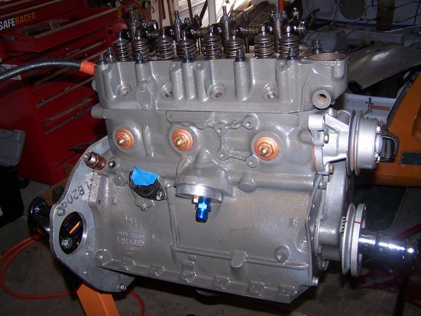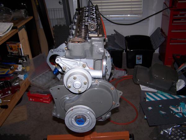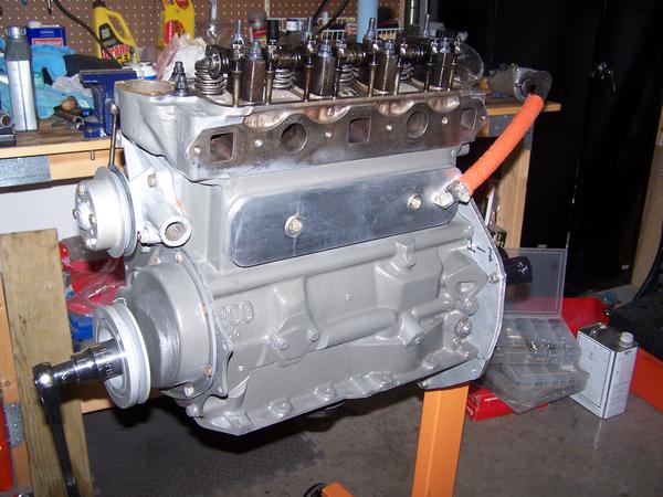 Head mounted and valves set. Next is attaching the oil pan, flywheel and clutch. Then the assembly is ready for getting dropped into the bay and mated up with the transmission.