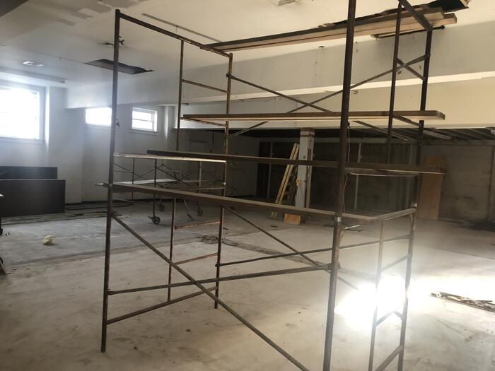 Ran out of room shoehorning 4 cars into a 3 car garage. The landlocked basement of the adjac2ent Commerical building equipped a freight lift, but will comfortably layout 8 full size parking spaces.