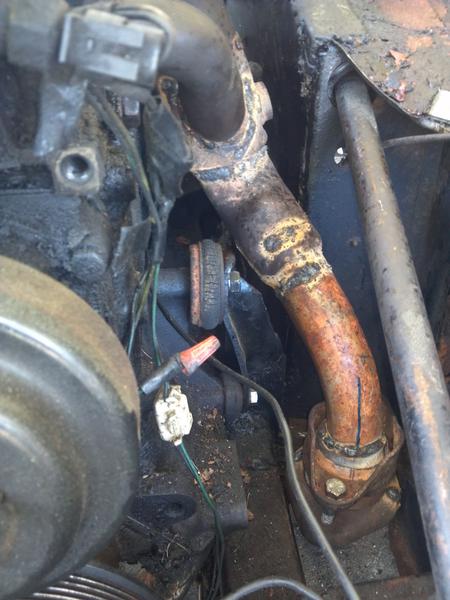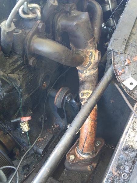 On the 2.5 Chevy installation... the exhaust needed to be rerouted to the front and down through the original location. I welded in a flange for ease of removal. These pictures show the welds before clean up.
