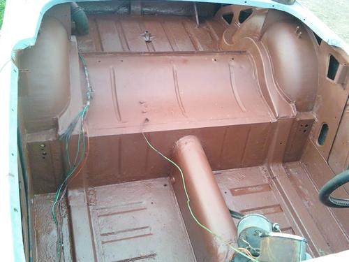 Was a nice day today. Decided to go ahead and apply primer to the floors. Will go back over with either POR-15 or another sealer.