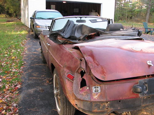 I got my first "new" bit for MG77 the other day. It's a replacement boot lid. The old one had been fairly demolished in the rear end collision that had made PO permanently park the little car. The actual part was cheap but mailing it from Indiana to NY cost quite a bit. Aw well, it got here in one piece and sits in my garage awaiting B-Day (Body Day).