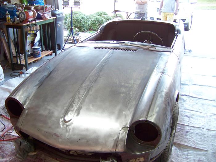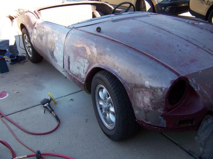 Now that the car type was decided on, the hunt was on! After several promising leads did not pan out, Craigslist brought us together with Larry and his 1970 Spitfire Mk III. After several emails, a ton of pictures, and some phone calls my perception was: A rust free, mechanical sound car that had most of its interior - in boxes - and needed body work. Larry kept causally mentioning things - weeks after I would have - that may have scarred off a mere mortal - but stuff that was big pluses to me. "...it idles a little rough, because of the de-tuned A6 cam..." or "it runs ok, probably run better with the electronic dizzy that comes with it"..."or "I don't know what kind of mileage it gets - not as good as factory because of the twin HS4's that are on it. It flows more with that, the header and Monza exhaust" or it comes with 2 Koni shocks in the box for the rear. I only got around to the 1 inch lowering springs and adjustable Konis on the front". The only sticking point, and the only reason I didn't just snatch it up - I am far more comfortable rebuilding an engine and gear box, than body work. My neighbor, and good friend, Jerry is the other way around. My TR3 has needed body work for some time, and its a project I have been dreading. Jerry volunteered to teach me the basics on a Spit, so I could tackle the TR3. He is almost as good a salesman as he is a painter (I have seen his work, he is a true master!), and he had me talked into it. We could do it during half time of an Alabama game, and it will look so good traffic would part for us wherever we go. All for the price of a six pack, and a few dollars. And it was just a short 7 hour drive away. Road trip!