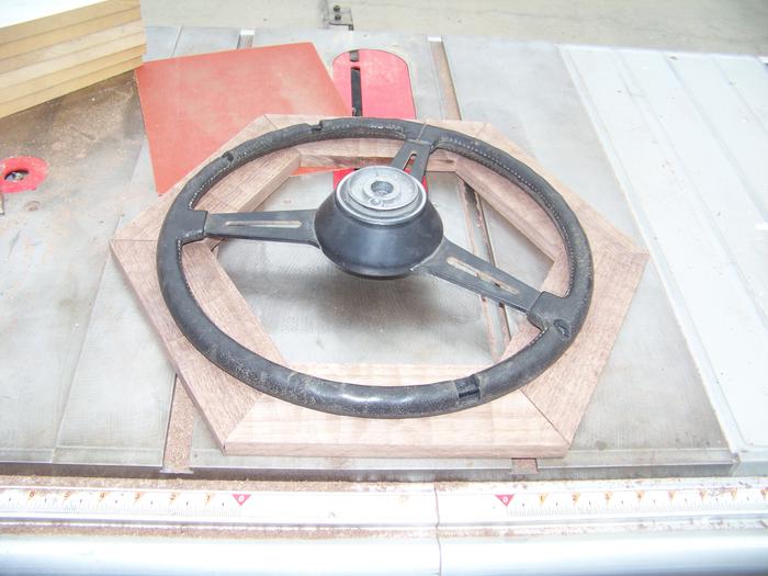 I have always enjoyed wood working, and I am the "Jerry" in that area, so, this was one of my favorite parts of the project. One of the things Larry (the PO) and I had agreed on was leaving him the awesome racing steering wheel that he had for years and years. In exchange, he put the original wheel back on the car. It was, well crumbly. And ugly. My last Spit had a very nice after market wood wheel that wood (ugg, yes agian) serve as the inspiration for this project. For the build, I took the general idea from Mitch's tech buliten: http://www.mgexp.com/article/diy-wood-steering-wheel-1.html
