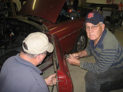 On 11/4/10 I delivered my 1973 Damask Red MGB tp Todd Sano for a new coat of paint. Prior to delivery I stripped all chrome, windshield, headlights, taillights, windows, door panels and everything else off the car that I didn't want to get paint on. A lot of work but I had the help of my Son, Douglas and friend Mark Fisher to do most of it. Todd will make all body repairs prior to painting. Color will be a TARTAN RED. Hope it comes out the way I want it to.