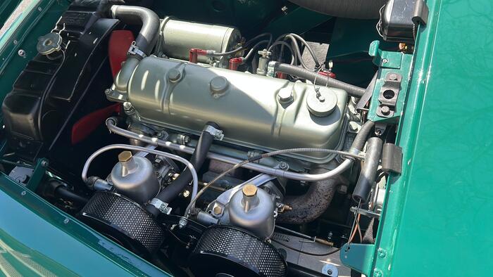 Documented same California owner from 1965 until I purchased after his death in 2019. Car had very minimal rust and underwent a complete frame off body and mechanical restoration. Car was done to original specifications except for a BN2 4 speed and a period modification, louvers ( not Le Mans ) to the original aluminum engine cover. Currently has a BN2 hypoid rear axel but I have a BN1 completely restored ready to install. Concourse level green leather seats and complete interior done by Geoff Chrysler in Canada.
