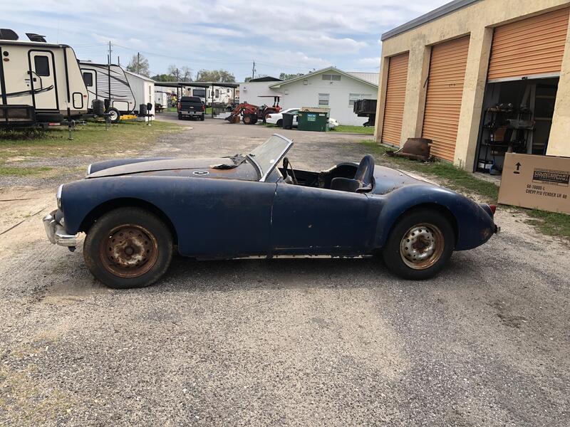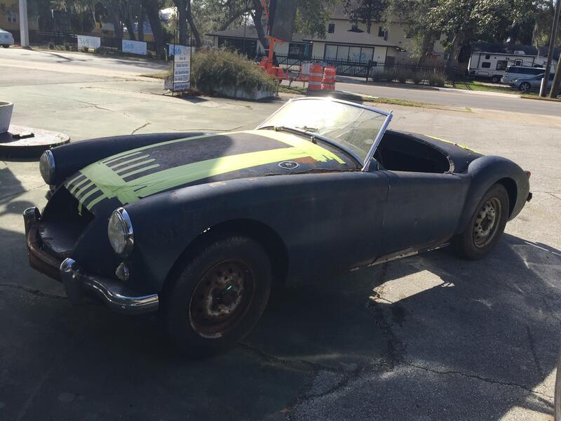 1958 MGA project with clean Florida title in my name. I have lots of extra parts that go with it including top frame, side curtains, bumpers, grill, and other items. I also have a very nice rolling chassis with disc brakes that could go with it for the right price.