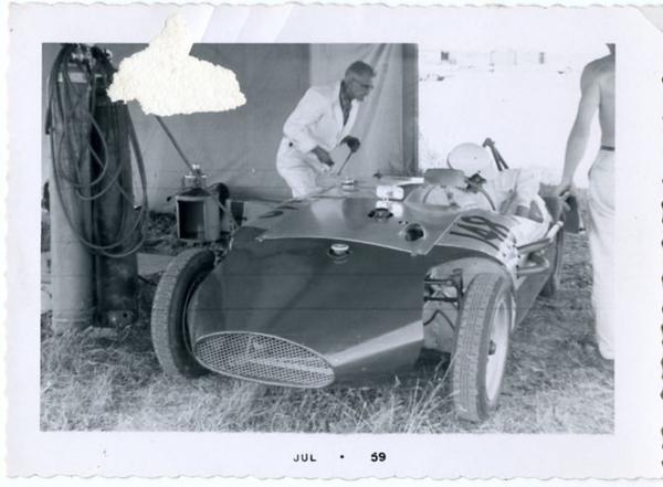 The V.A.Y. Special was the Canada Class Champion in 1958 and 1959 driven by Vic Yachuk (V.A.Y. are Vic’s initials). It features a tube frame chassis, aluminum body with fiberglass nose and tail, Morris Minor suspension, 948-cc, 4 cylinder, BMC A-Series engine, single Weber DCOE sidedraft carb, 4 speed transmission, and MGA 10 inches drums all corners.