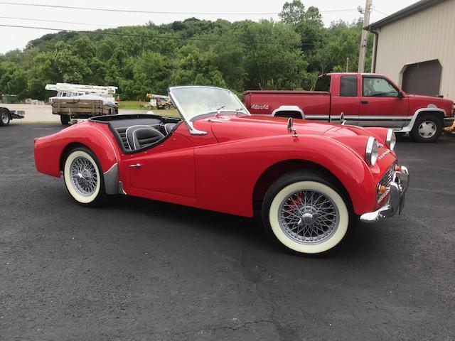 1960 Triumph TR3A that has been fully restored including; engine, OD transmission and rear axle all have been rebuilt. I have a British Heritage certificate for the car too. The car is painted in the original color (Red) with new Black Leather interior, new Black carpet, White (original color) top with White side curtains. The car had a complete restoration over 3 years. New parts include: