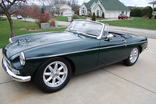 Previous Owner had this car for the last 20 years. It was a California car and is an early, low serial # MGB with highly desirable pull handle doors. It retains early classic looks while having upgrades for drivability and convenience such as a full synchronized transmission, five main bearing engine, and 12 volt negative ground conversion. Finished in British Racing Green and black interior with white piping, the car shows well, and looks as great going down the road as sitting in your garage! This car was treated to a full engine rebuild when it was freshened a few years ago by Previous Owner. The soft top is the correct vinyl top with the correct 2 piece top bow that stores in the trunk. Carpeted trunk too. Owner is a Pittsburgh MG Club and NAMGAR member.