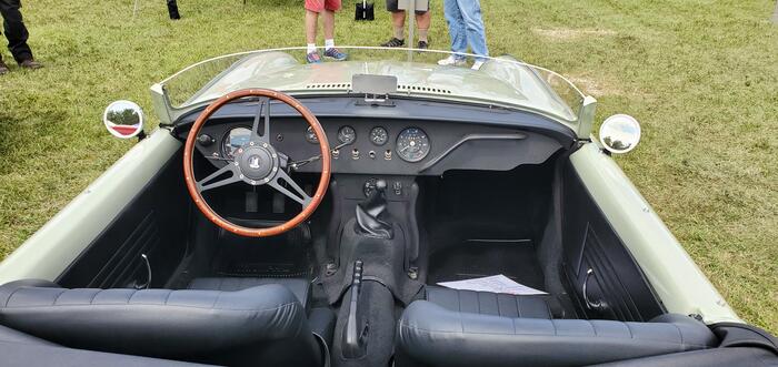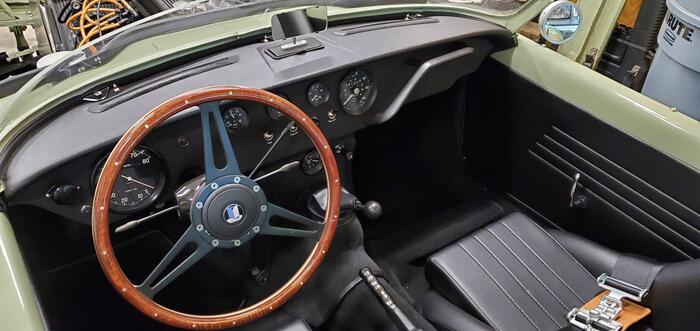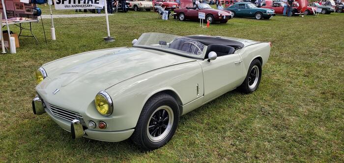Modeled after Giovanni Michelotti's original concept drawings of the Spitfire. Small crank 1300 with later large valve 1500 head with twin HS4s carbs. 10:1 compression, j type overdrive. American racing Silverstone wheels. New old stock Vista Grill.
