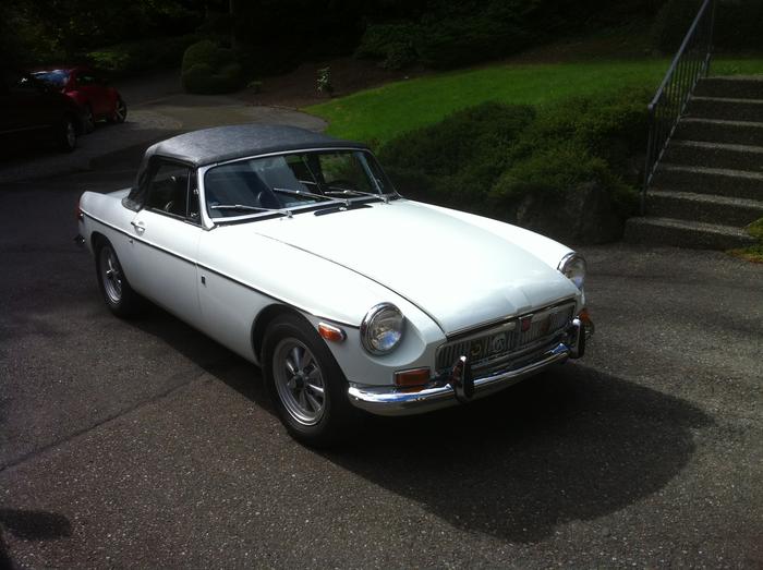1970 MGB. Only year for the split rear bumper! Correct BLVC 59 Glacier White with one chrome-off repaint on an extremely original and correct car, black interior and hood with matching full tonneau and newer carpeting. Clean, straight, rust free car to original specifications that has been garage kept by a long-standing British car enthusiast. Only 51, 475 original miles from new on this immaculate car that features great period accessories including an Amco center armrest and period ultra-light Minotaur alloy wheels (similar to Minilites – but cooler!) and a carpeted boot with spare tire cover. This is a car that is in superb condition ready to buy and drive now with no repairs or refurbishment necessary. $12,500.00 OBO. For more information contact Burt Curtis on (425) 747-0245 or Steve Hanegan on (206)3565-5807 or steve@abfm.com – please contact Steve for additional pictures!