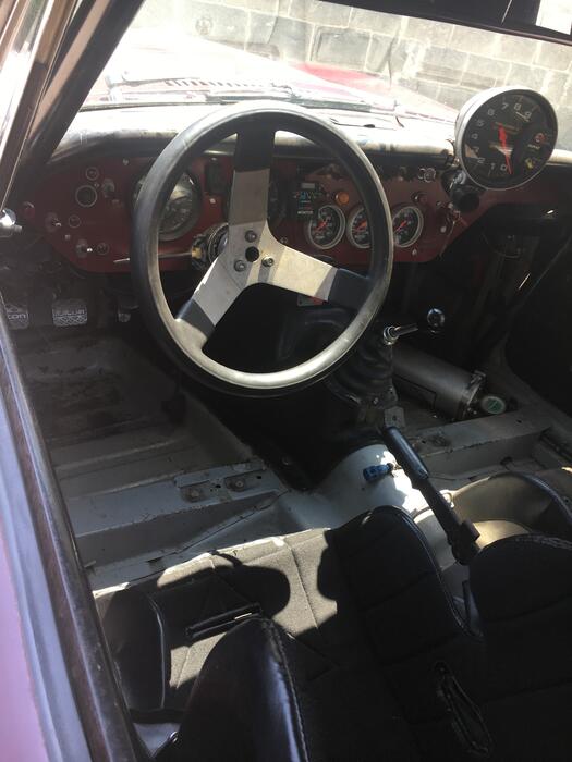 1972 GT6 Mk III. This is the racecar project of your dreams. Converted in the 1980s into a full race car, the interior has a full roll cage, racing buckets, racing harnesses (expired webbing) and a street sign for a floor. Racing upgrades include fuel cell and pumps, alloy wheels, straight pipe, additional tachometer, welded diff, poly bushings (installed 2019 and bascially unused), and removable steering wheel. The car runs, but could use a good carb tuning. Currently the differential is belived to be broken, preventing the car from rolling well. The car was also in an accident at Watkins Glen with the PO, damaging the right rear corner. Under current ownership, the problem has been partially resolved. The car comes with brand new street legal racing tires, new fuel bladder, replacemengt differential, and an assortment of additional parts.