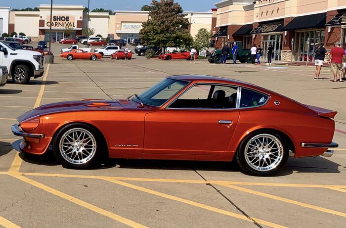 Here is my 240Z, House of Kolors Kandy Tangerine over silver base coat, filled in the marker lights, L28 w/Pertronix ignition, Twin SU Carbs, Custom Aluminum air cleaner w/K&N filter, coated Header, Powder Coated Engine parts in Near Chrome finish. 5Speed Gear Box.
