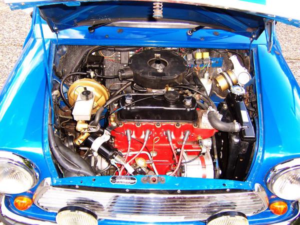 Over bored 1380cc A series motor, Su HIF44 carb, 11:1 compression, 276 degree cam, LCB header, custom exhaust, rear sway bar. Imported from UK, converted to left hand drive.