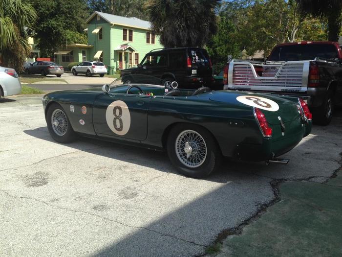 Converted to vintage race car look, has all lights and horn. Moss race springs front & rear, Headley 1 inch drop spindles. Weber 45 DCOE, Tourist Trophy Sport stainless exhaust system with header. Short shifter, custom wiring harness. Powder coated wire wheels, Lucas Tripod headlamps, Raydot mirrors, new 195/70-14 Toyo tires, new brake pads & rotors, no rust, clear Florida title. Offers considered.