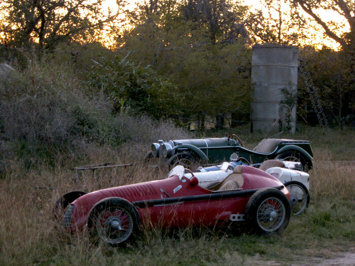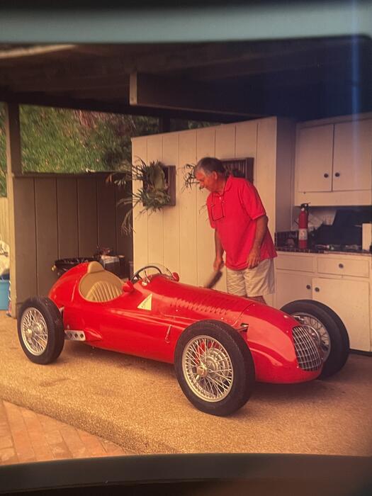 So we made a car! Inspired by the Alfa 158 Alfetta, and a bit by the Keck Special in the rear, it has a Topolino front-end and a Triumph Hearald rear-end. Not running at the moment, as it went to Texas in 2006 and was left to fade away a bit. Then it got packed away with all the other stuff from Stoneleigh in 2013 and is definitely not running now...It didn't run when it was stored away, so certainly not now! Still to be moved to Virgina, along with the Topo and four of the CycleKarts! (hopefully in the Autumn of '25!)