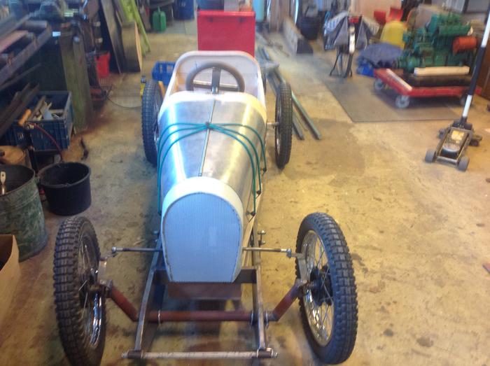It started out as a Bugatti t 37 Pictures wil be posted soon. I couldn't afford the t35 wheels. The straight 8 was not in my budget either. But I do have a spare wheel that doesn't fit. Yamaha. 35mm bearings.
